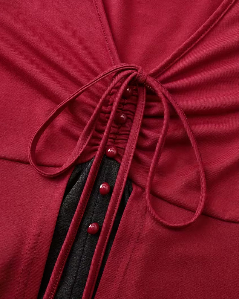 Elevate Your Everyday Style! Discover our Casual Cotton Blend Top, perfect for daily wear. This chic top features a solid color design with elegant flare sleeves and a unique lace-up bowknot detail that adds a touch of sophistication.